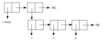 (CONS (QUOTE A) (CONS (QUOTE B) NIL)) returns (A B) . Expression to create the nested list from the second image: (CONS (QUOTE C-MAJOR) (CONS (CONS (QUOTE C) (CONS (QUOTE E) (CONS (QUOTE G) which returns